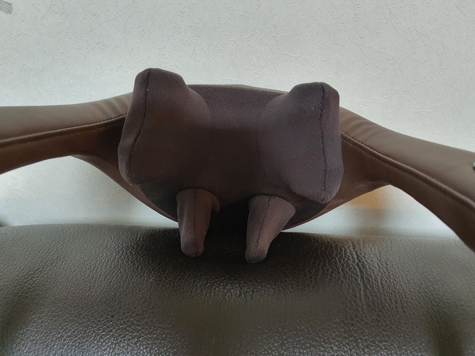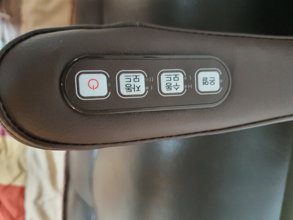 마사지 강도는 팔에 끼는 고리에 팔을 끼워서 팔을 아래쪽으로 당기는 힘으로 마사지 강도 조절이 가능하고 이것도 힘들다 싶으면 아예 소파등받이에 기대어 목을 뒤로 기대거나 눕는 힘으로 자동으로 힘이 조절이 됩니다. TV 보면서 마사지 받는 느낌이 최고입니다.