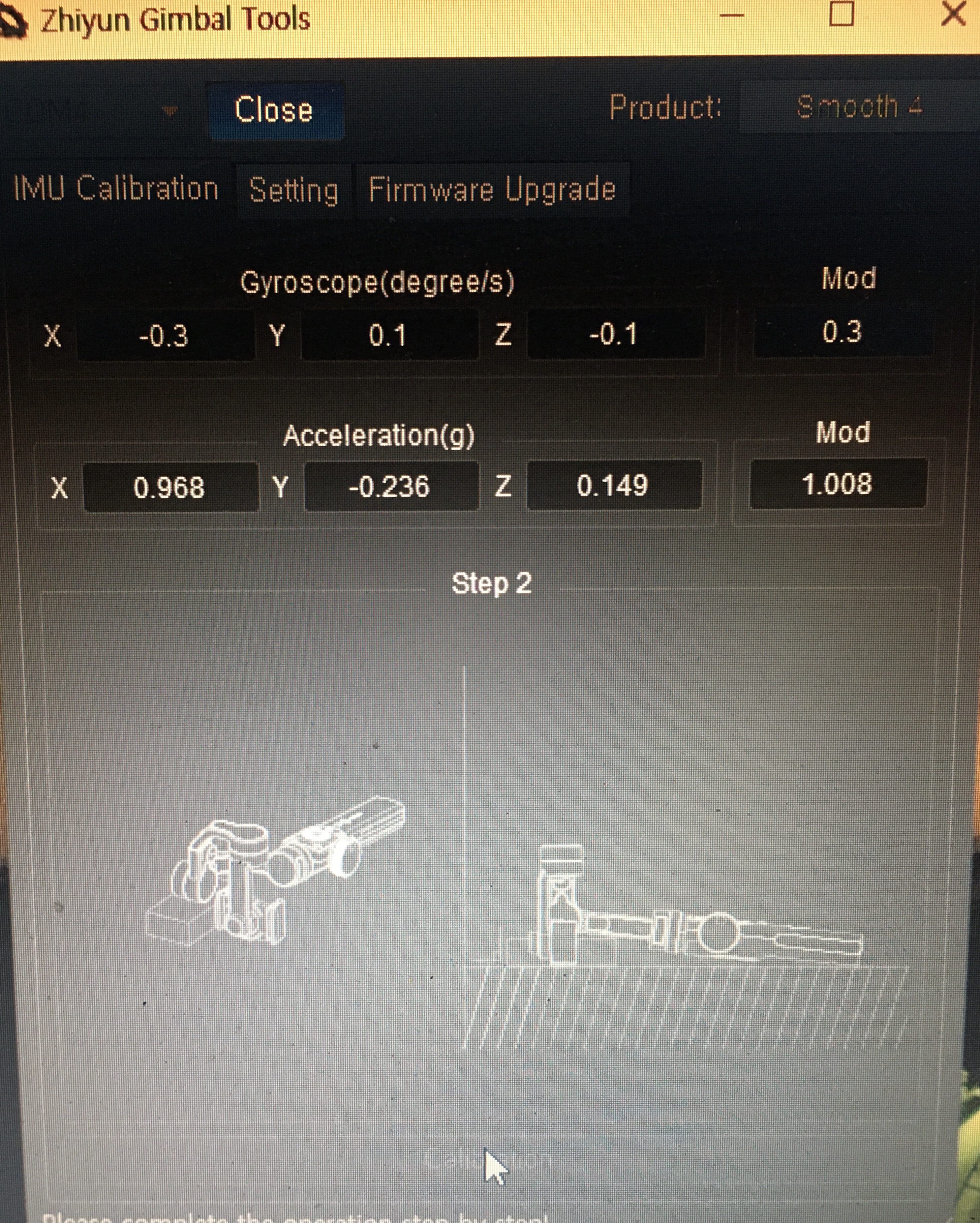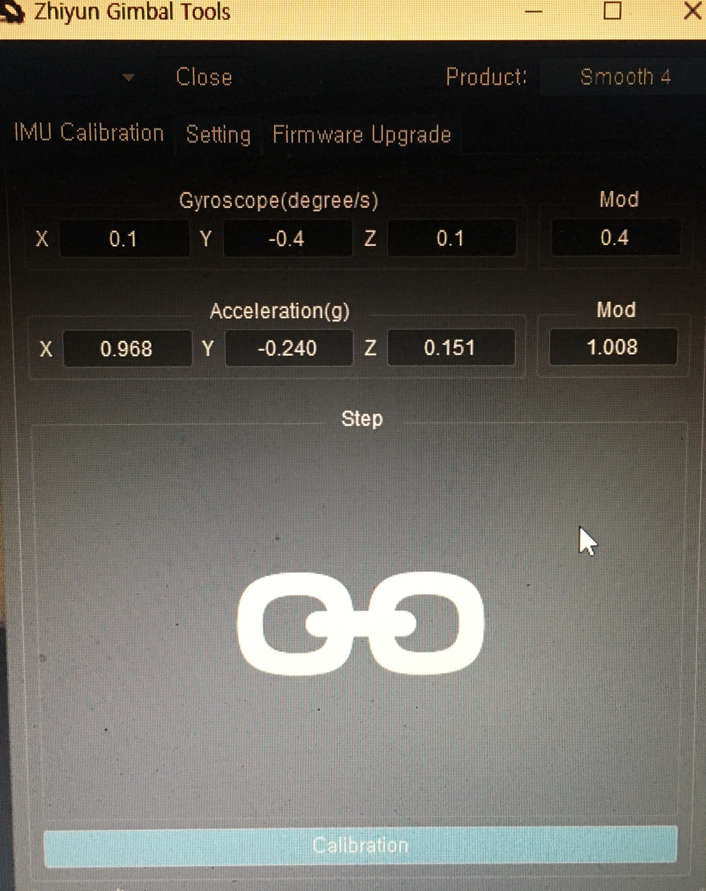 calibration 진행에 앞서 삼각대를 꼭 제거해 주세요. 스무스4와 컴퓨터를 연결하기 전에 우선 Zhiyun USB 드라이버를 다운 후 압축을 풀고 설치한다. 이제 USB로 컴퓨터와 본체를 연결하면 효과음이 들리면 이상없이 된 것이다. 이제 홈페이지에서 Calibration Upgrade Tool을 다운 받아 실행시키고 open버튼을 클릭하고 아래 Calibration을 클릭하면 총6단계중 1단계가 그림과 같이 놓으라는 설명과 함께 진행된다. 1단계에서 부터 화면에 나온 그림과 같이 놓으면 바로바로 다음 단계로 이동하며 완료 된다.